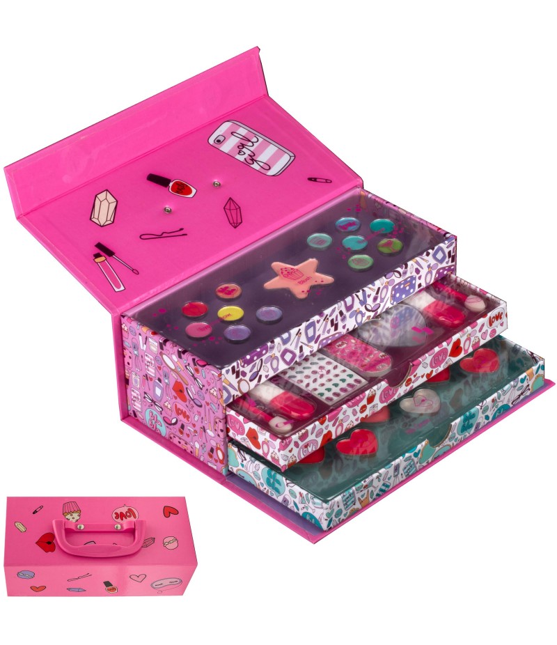 Setul conține fard de pleoape (12 nuanțe x 0,32 g), balsam buze vanilie (6 x 0,6 g), fard de obraz (1 x 1,3 g), accesorii. Vârsta recomandată +6ani. Mod de utilizare: Balsam buze: aplicați o cantitate moderată de produs pe buze și distribuiți uniform. Fard de pleoape/obraz: se aplică pe pleoape/obraz, folosind o pensulă pentru farduri de ochi/obraz. Îndepărtați machiajul cu demachiant. Vârsta recomandată + 6 ani.