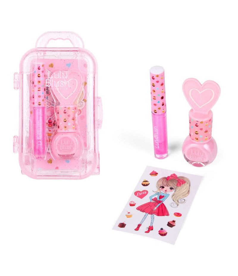 Setul conține 1 × 5 ml lac de unghii roz, 1 × 1,2 ml luciu de buze aromă zmeură si stickere decorative. Mod de utilizare: Lac de unghii: agitați bine sticluța înainte de utilizare,ulterior aplicați unul sau două straturi de lac de unghii. Îndepărtați oja cu apă și săpun. Luciu buze: aplicați o cantitate moderată de produs pe buze și distribuiți uniform. Îndepărtați luciul de buze cu demachiant. Vârsta recomandată +3 ani.