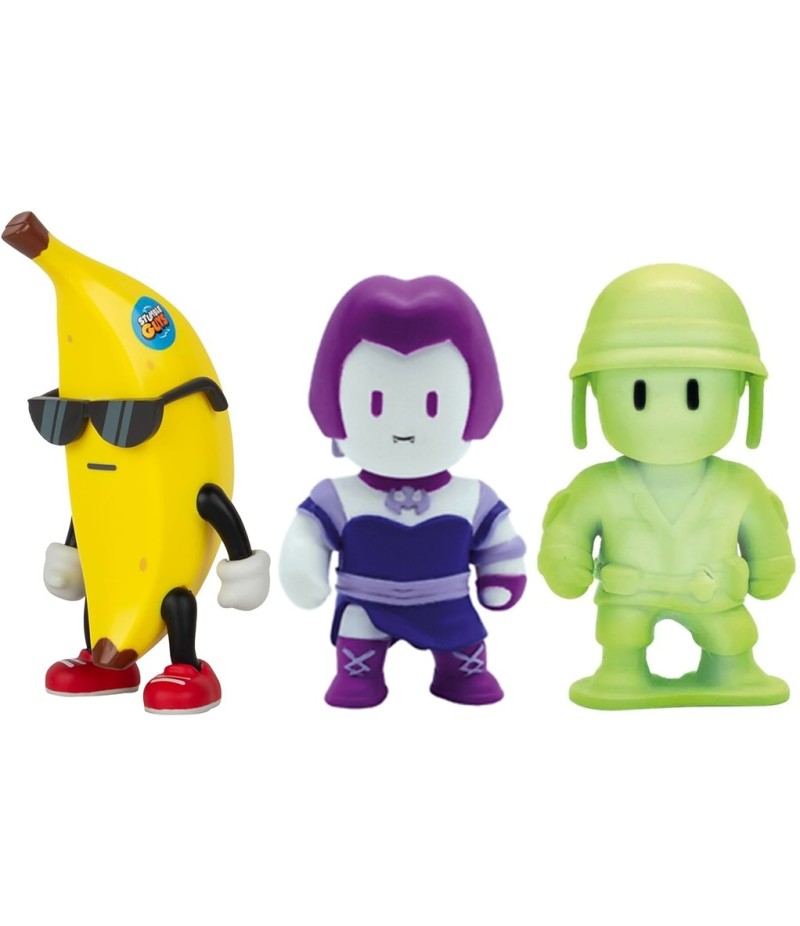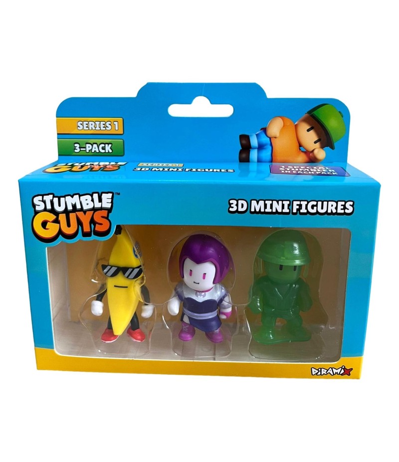 Setul de 3 mini figurine Stumble Guys 3D aduce in fata fanilor o colectie de personaje misterioase, printre care se numara Banana Guy, Lilith Nightshade. Army Man.