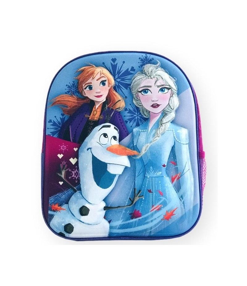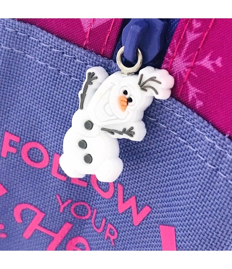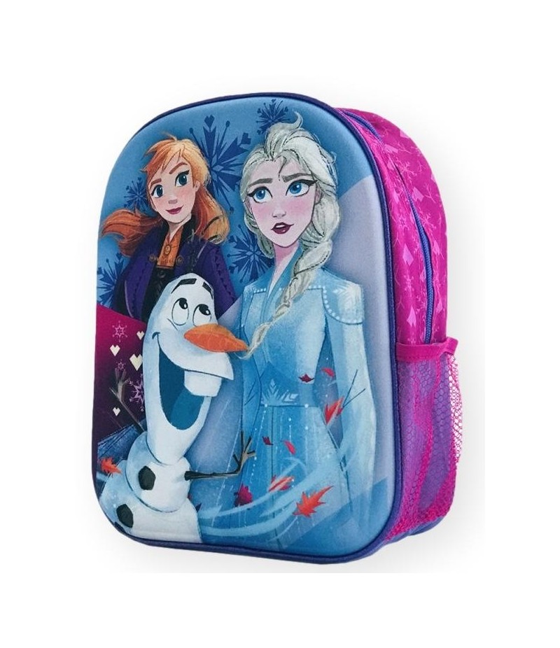 Ghiozdan 3DFrozen/span>cu 1 compartiment mare prevazut cu fermoar, 1 buzunar lateral, bretele buretate si reglabile./span>Fermoarul este accesorizat cu personajele in miniatura.