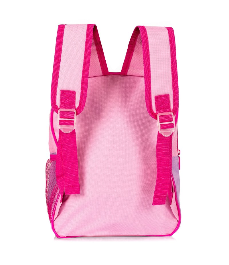 Ghiozdan micPrincess cu 1 compartiment ce are deschidere cu fermoar, 1 buzunar lateral, bretele buretate si reglabile.Fermoarul este accesorizat cu personajele in miniatura.