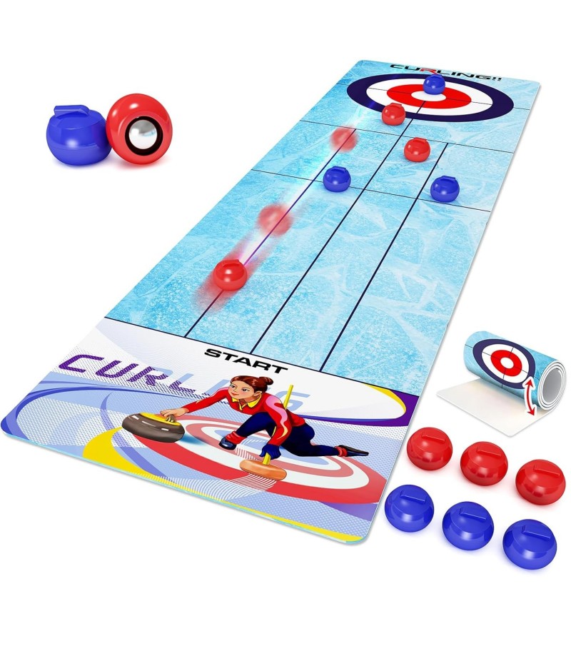 Joc Interactiv Flippy - Covor de Curling pentru Copii, 90 x 20 cm, 6 Mingi Incluse, 1-4 Jucatori, +5 Ani