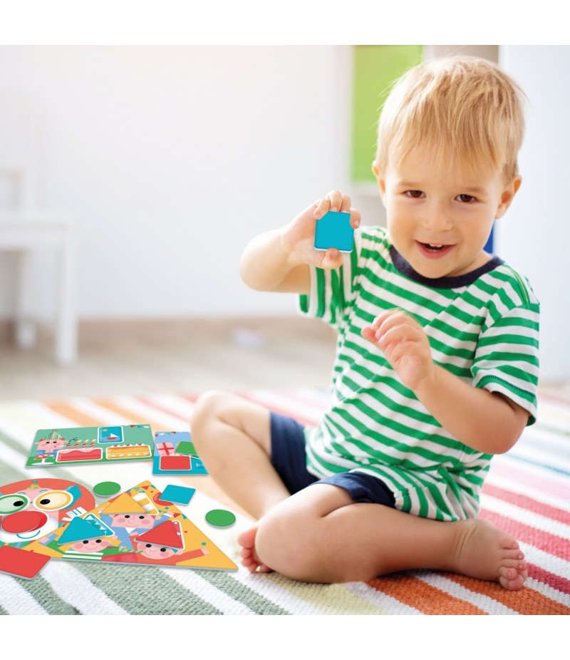 Prin joc, copilul va invata formele si culorile, imbunatatindu-si abilitatile motorii, logica si spiritul de observatie, precum si creativitatea si fantezia.