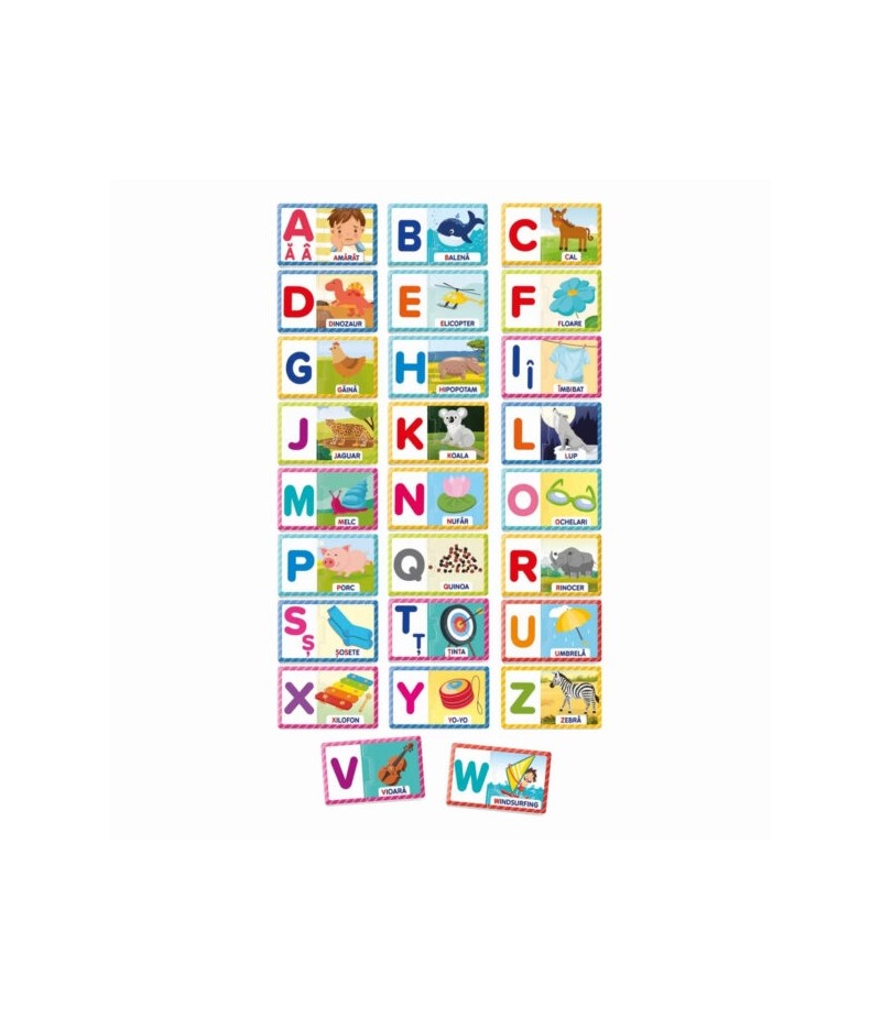 AGERINO DE LA A LA Z Un joc educativ format din piese de puzzle cu litere si lucruri care incep cu aceeasi litera, astfel incat copiii sa invete alfabetul si sa faca legatura litera-cuvant.Mai mult, de indata ce copilul este familiarizat cu literele, poate incepe sa citeasca cuvintele litera cu litera, descoperind astfel cuvantul magic al lecturii!.Valori dezvoltate logica, cunostinte despre lume, autonomia, sociabilitatea, memoria, limba straina, aptitudinile motorii. Toate jocurile lui Agerino au fost concepute de specialisti in pedagogie si psihologie si au fost testate in scoli.