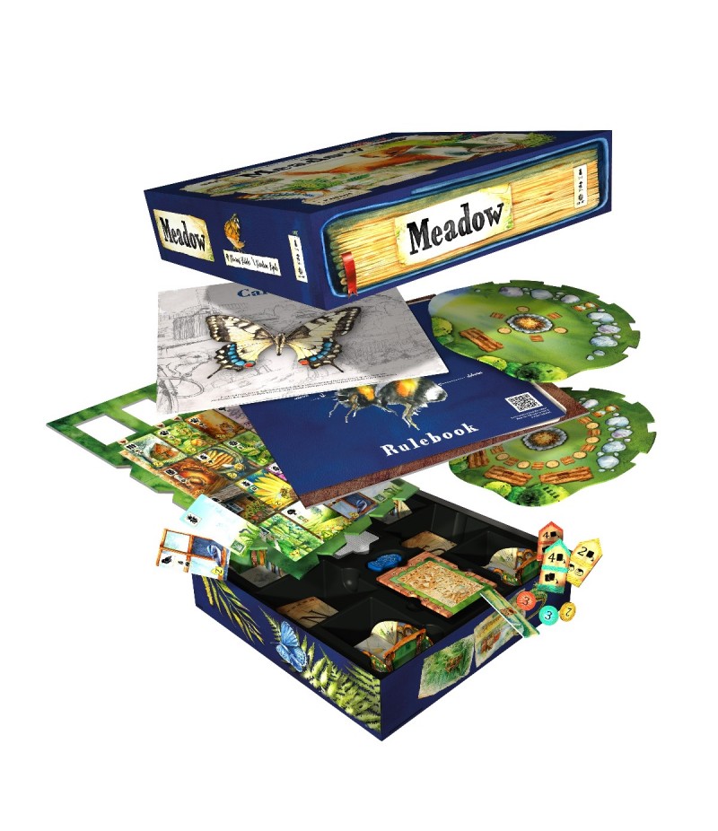 Meadow este un joc captivant cu peste doua sute de carti unice care contin ilustratii in acuarela pictate manual. In Meadow, jucatorii au rolul de exploratori care concureaza pentru titlul de cel mai priceput observator al naturii. Pentru a castiga, ei strang carti cu cele mai valoroase specii, peisaje si descoperiri. Calatoria lor este condusa de pasiune, de curiozitatea de a cunoaste natura, de o minte curioasa si de dorinta de a descoperi misterele mediului inconjurator. Jucatorii se intrec pentru a-si indeplini obiectivele. In acest joc de societate de dificultate medie pentru 1-4 jucatori, plasati, pe rand, jetoane pe una dintre cele doua table de joc. Plasarea unui jeton pe tabla principala permite jucatorului sa obtina carti, dar pentru a le juca necesita indeplinirea anumitor cerinte. Varsta recomandata 10+ ani. Durata joc 60-90 minute.