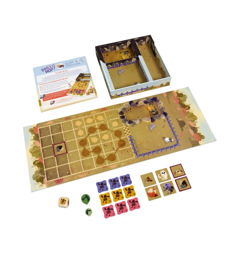Oaia Hop este un joc de societate ce se poate juca in echipa sau solo, incepand cu varsta de 5 ani. In acest joc de cooperare, trebuie sa aduceti oile inapoi la stana fara ca acestea sa fie prinse de lupi! Treceti obstacolele care ingradesc pajistea si, mai ales, aveti grija de lupii care patruleaza! Logica, reflectia si ajutorul reciproc vor aduce in siguranta cat mai multe oi! Un joc in continua evolutie, cu mai multe niveluri de dificultate, bazat pe mecanica jocurilor de dame, care permite oilor sa inlantuiasca miscari epice pe tabla de joc. 1-4 jucatori. Varsta 5+