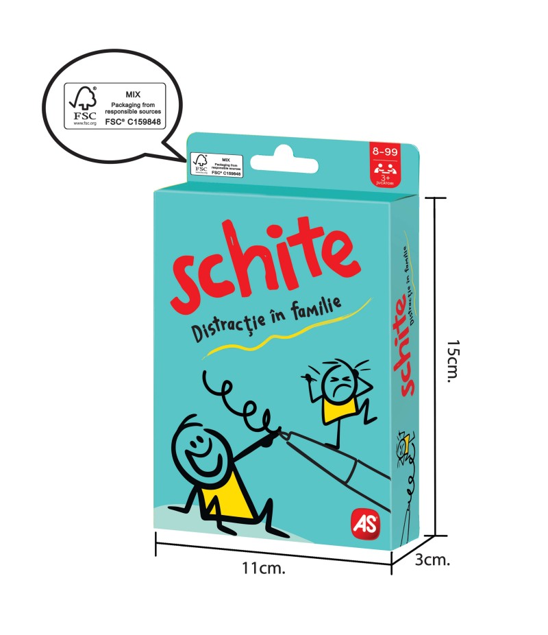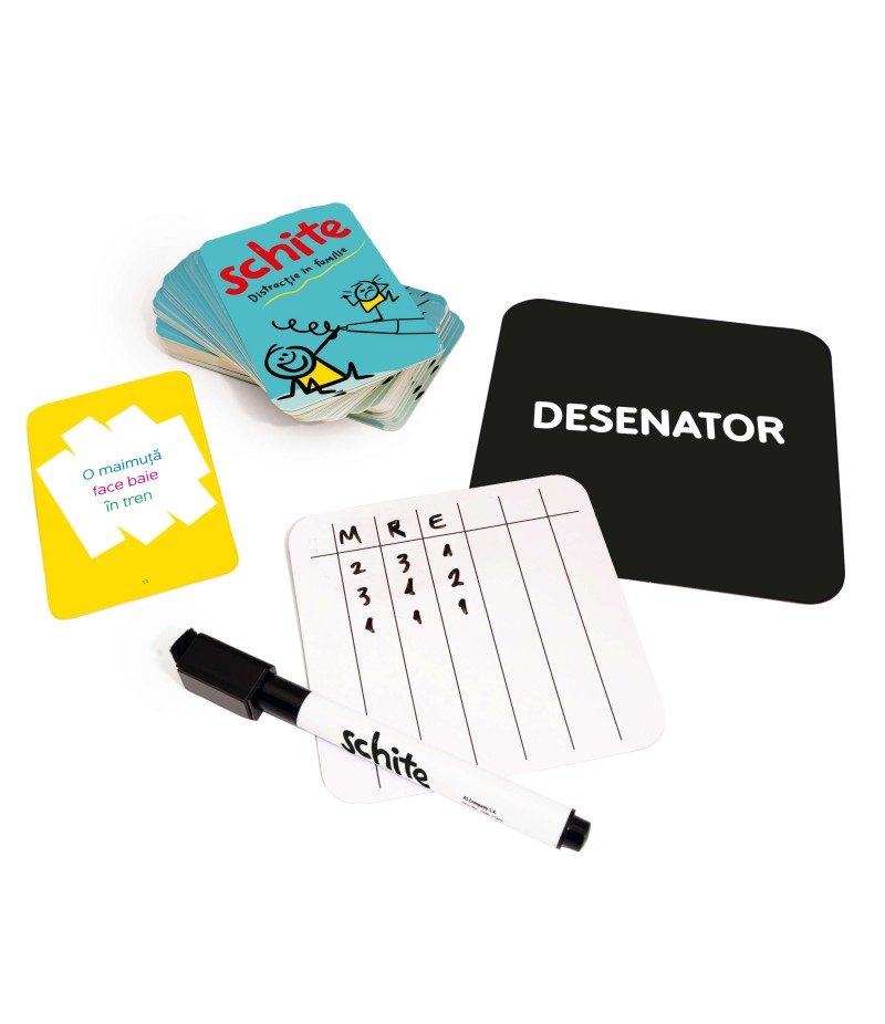 Jocul de carti Schite este un joc distractiv si creativ care aduce împreuna prietenii si familia pentru momente pline de râsete si imaginatie.