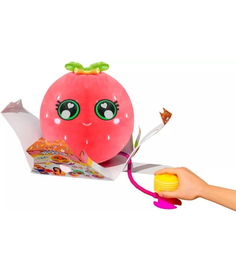 Pe masura ce jucaria se umfla, ambalajul se deschide spectaculos. Jucaria in forma de capsuna Little Biggies, acoperit cu un material moale si placut la atingere, este perfect pentru imbratisari. Cand timpul de joaca se termina, o poti dezumfla usor si depozita pana la urmatoarea aventura.
