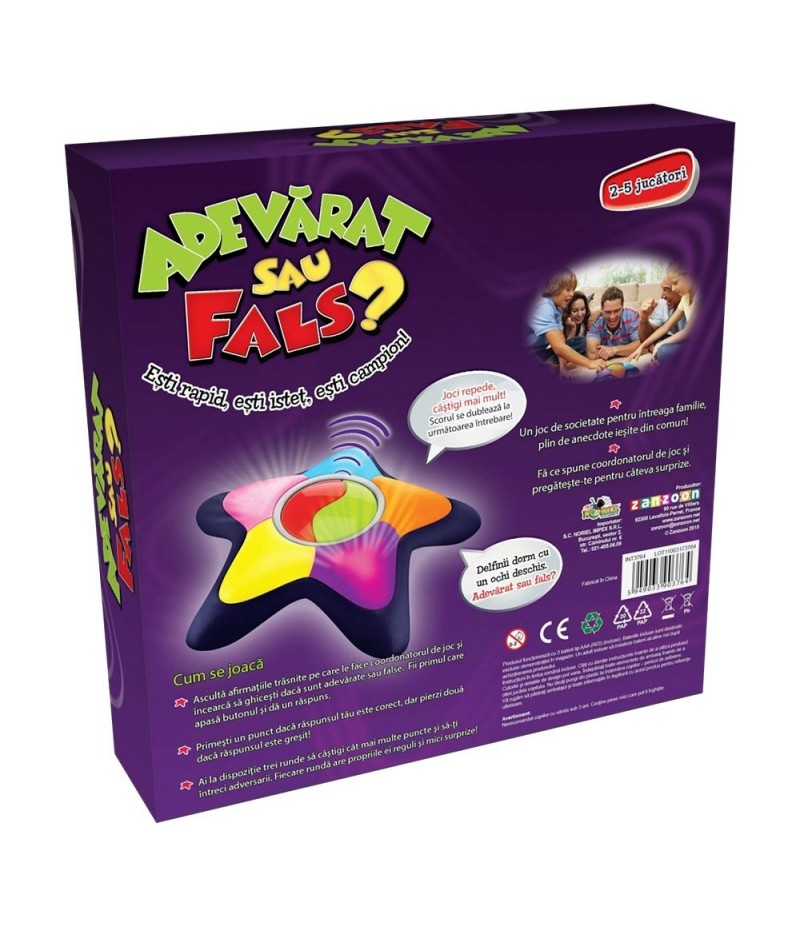 Setul contine: O unitate de joc electrica in forma de steluta cu 5 colturi si cu butoane, care emite fraze, si instructiuni.