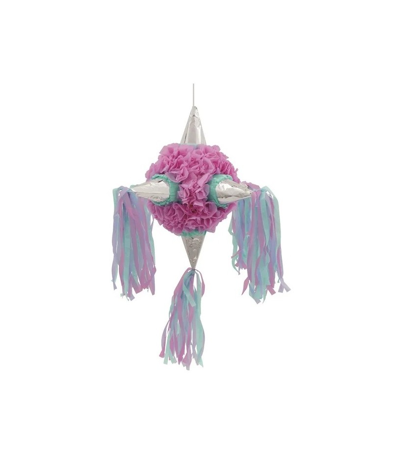 Este prevazuta cu 5 brate decorate cu ciucuri lungi si colorati, oferind un efect vizual deosebit in timpul jocului. Copiii pot lovi pinata pana cand aceasta elibereaza surprizele ascunse - bomboane, mici jucarii sau confetti (neincluse).