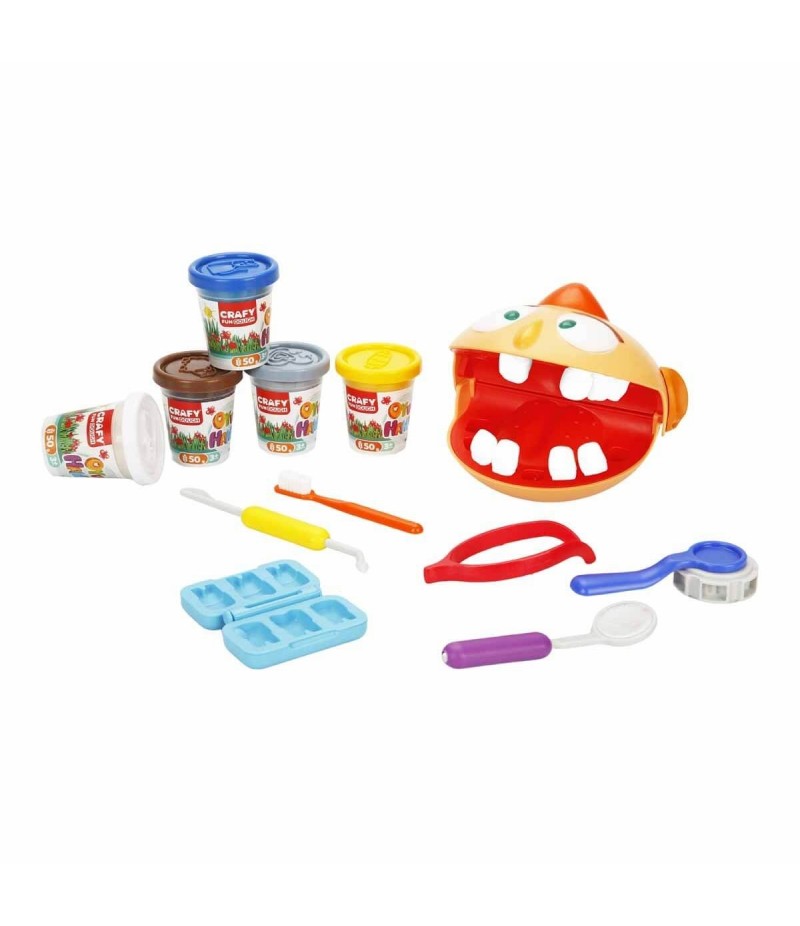 Joaca de-a dentistul cu siguranta va crea zambete din nou si din nou, la propriu! Copiii pot simti cum este sa fie de cealalta parte a scaunului stomatologic cu setul de la Crafy. Modeleaza dinti, confectioneaza un aparat dentar, indeparteaza cariile cu freza si multe altele!