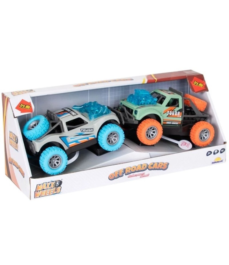 Setul vine cu doua masini de teren, cu o gama larga de functii care adauga un nivel inalt de distractie si entuziasm la experienta de joc a celor mici. Prin simpla apasare a butonului de activare, distractia incepe. Este momentul cand masinile sunt gata sa porneasca intr-o cursa plina de actiune si obstacole.