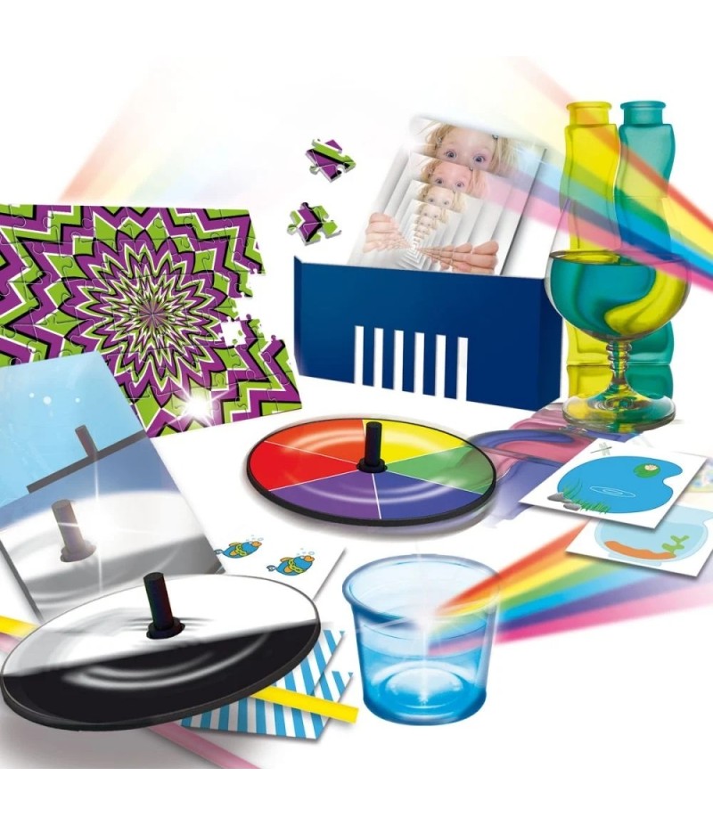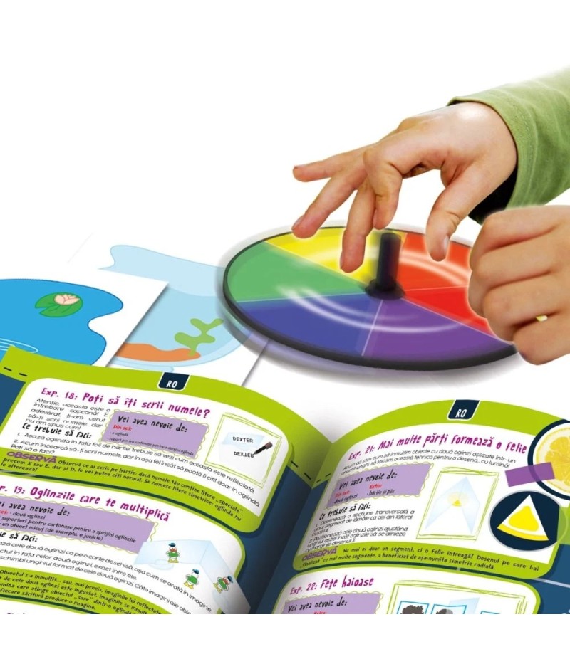 Acest set extraordinar iti ofera posibilitatea de a realiza peste 25 de experimente fascinante, prin care vei descoperi magia luminii si efectele sale asupra culorilor si imaginilor.