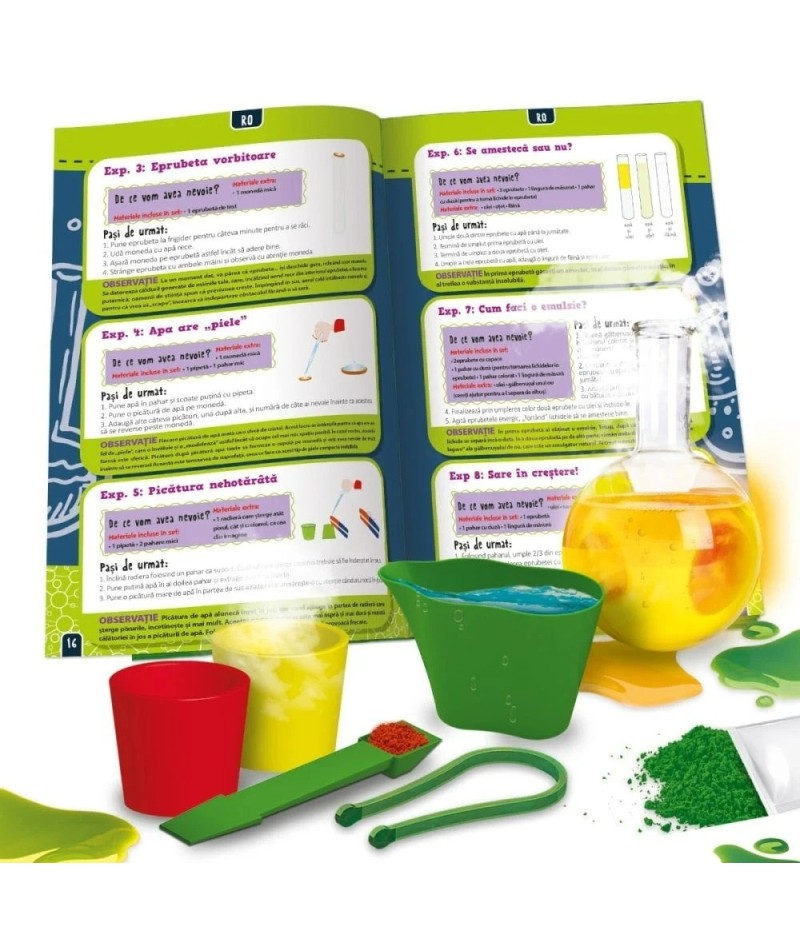 Trusa stiintifica este perfecta pentru a cunoaste conceptele de baza ale chimiei.